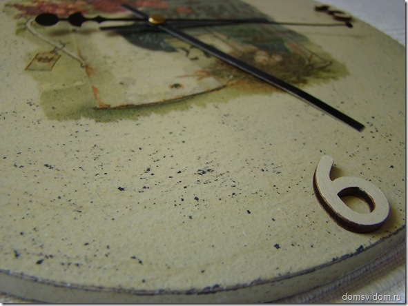 да, очень эффектная обшарпанность! Так, Инна, признавайтесь, Вы наверно собрались открывать часовую лавочку?;) Да, края можно тоже зачпокивать краской, только, если Вы клеите на ПВА, предварительно покройте мотив лаком, иначе салфетка от краски размякнет и будет выпирать. еще , как вариант, можно обыграть края трафаретом.